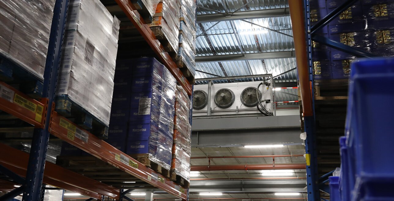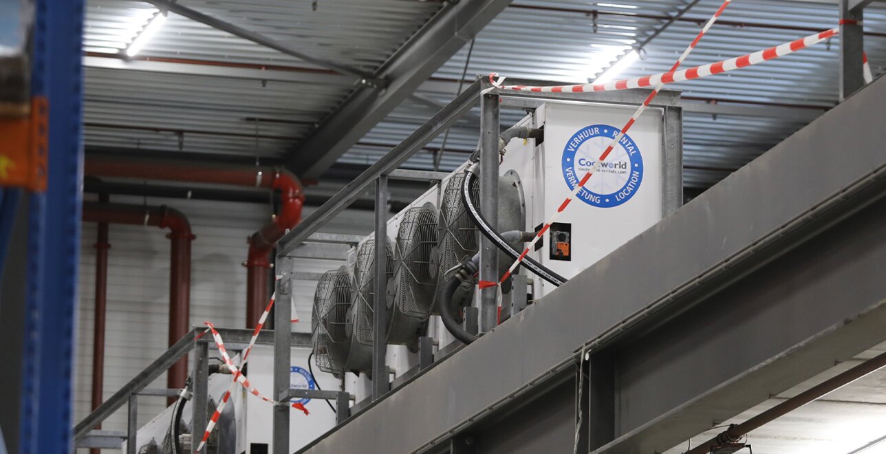 The storage hall of the major food distribution centre houses a massive variety of foodstuffs for an equally diverse client base. That fact makes maintaining the correct temperature particularly vital. Not only in terms of food safety but also with a view to guaranteeing the quality of the products in storage. Wherever quality control and temperature play an important role, Coolworld is able to make the difference. One of the halls within this massive logistic centre was therefore cooled using a rental installation.