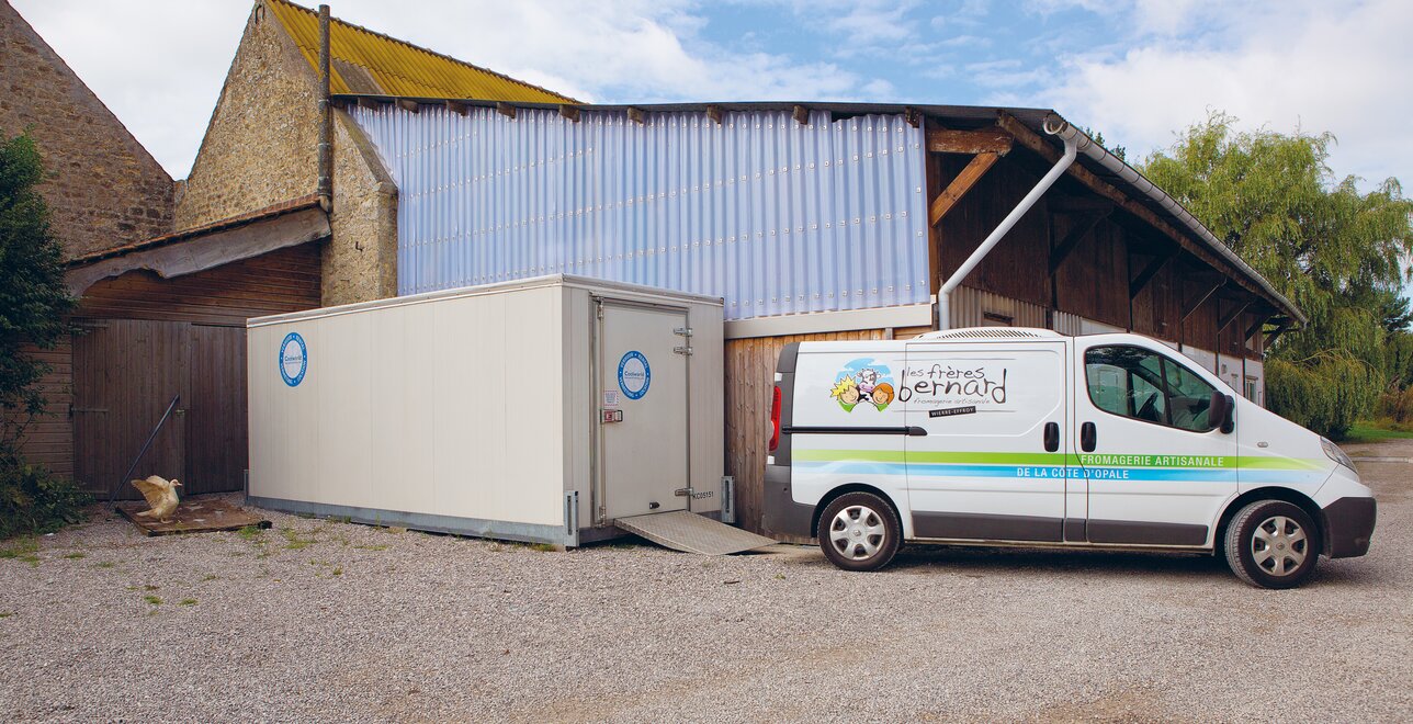 The cheeses from cheese maker Ferme du Vert are produced using artisan methods in a controlled process. The cheeses are cooled in a series of stages in special rooms known as ācellarsā. The restricted capacity of these cellars is however threatening to slow down the further growth of production. In advance of a planned renovation, the brothers Bernard called upon Coolworld to install a temporary cold storage cell with a capacity of 30 m³.