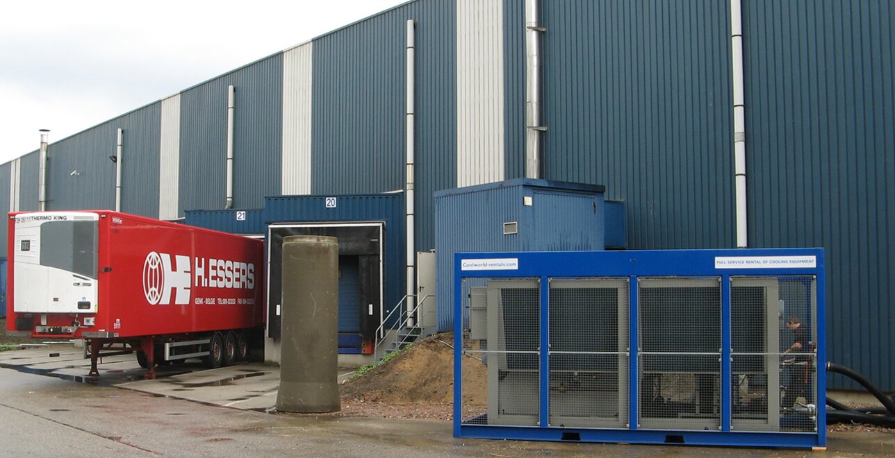 This work is undertaken in the company’s own temperature-controlled warehouses within three different temperature ranges: 15 °C tot25 °C, 2 °C to 8 °C and -20 °C. During the summer months, the organisation needs additional cooling capacity in these temperature-controlled warehouses. Whenever the weather conditions require, chillers are immediately rented from Coolworld. The rental period usually starts at the beginning of the summer.