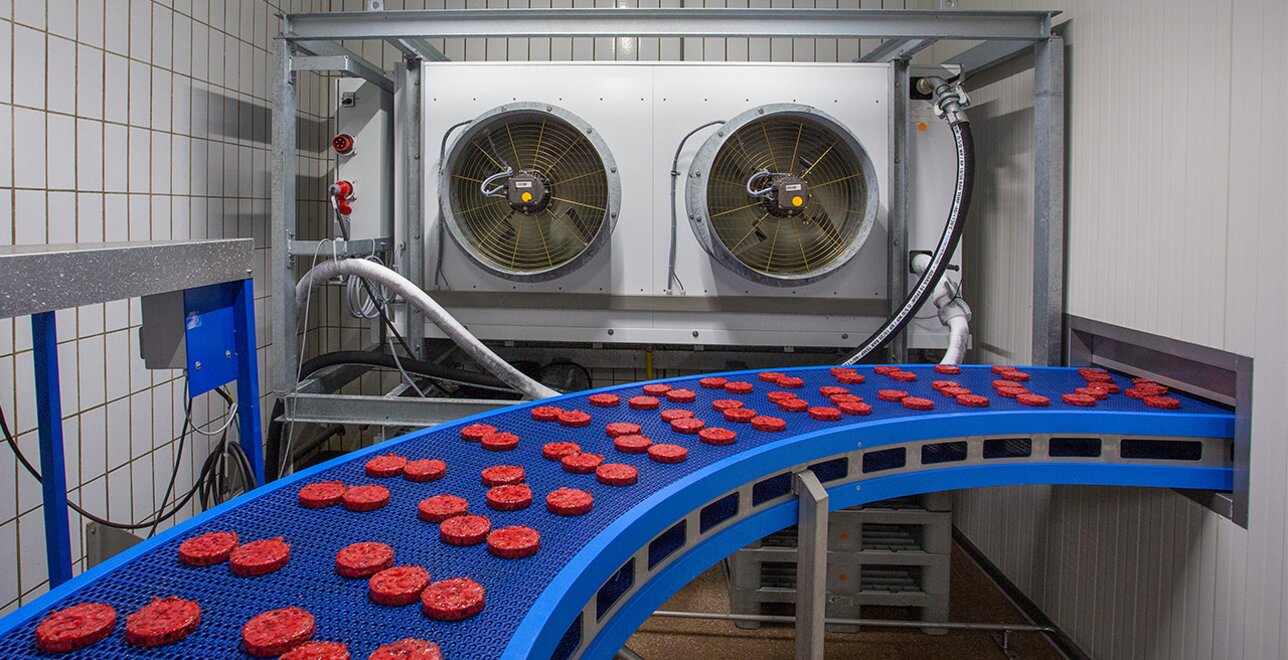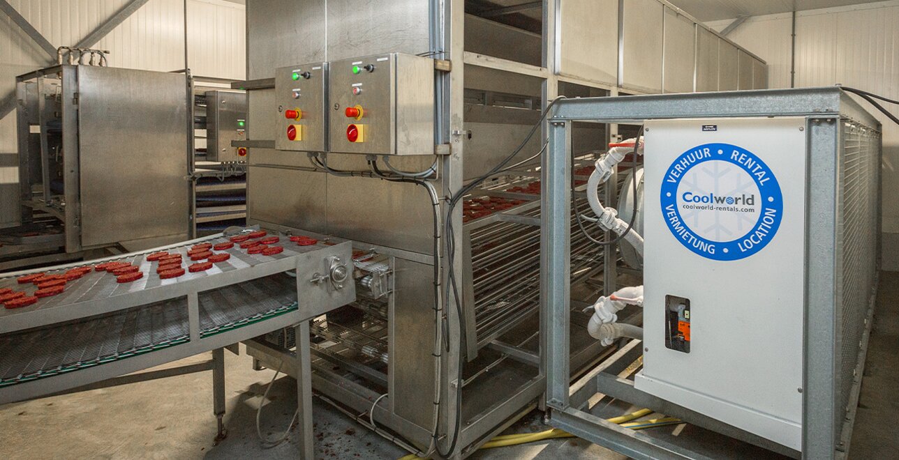 Coolworld is regularly called upon to support innovative test programmes. One excellent example is the collaboration with Zwanenburg Food Group. This meat processing company has developed a production line for veggie burgers. In collaboration with Veld Koeltechniek, a temporary solution for cooling down the veggie burgers during the preparation process was needed. The decision to opt for Coolworld was fully justified. Thanks to an inventive rental solution, the test phase was completed ahead of schedule. In addition, work was carried out on a permanent installation during the process.