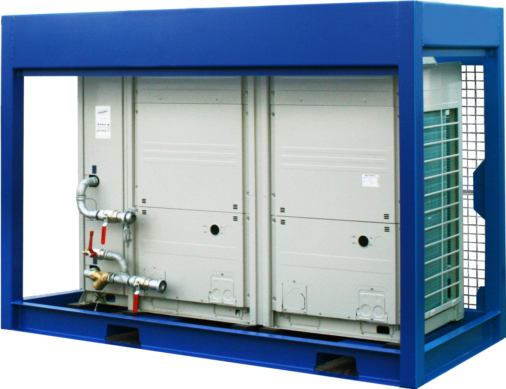 Air-cooled chiller with a cooling capacity of 60 kW, fitted with an internal HD water pump. The machine is fully inverter-controlled and has a range from 25 to 120% (14.8 kW to 59.3 kW respectively) with an ESEER value of 4.12! The machine is fitted in a solid frame with condenser protection in the form of an impact-resistant grid, and can be easily moved by forklift truck or crane.