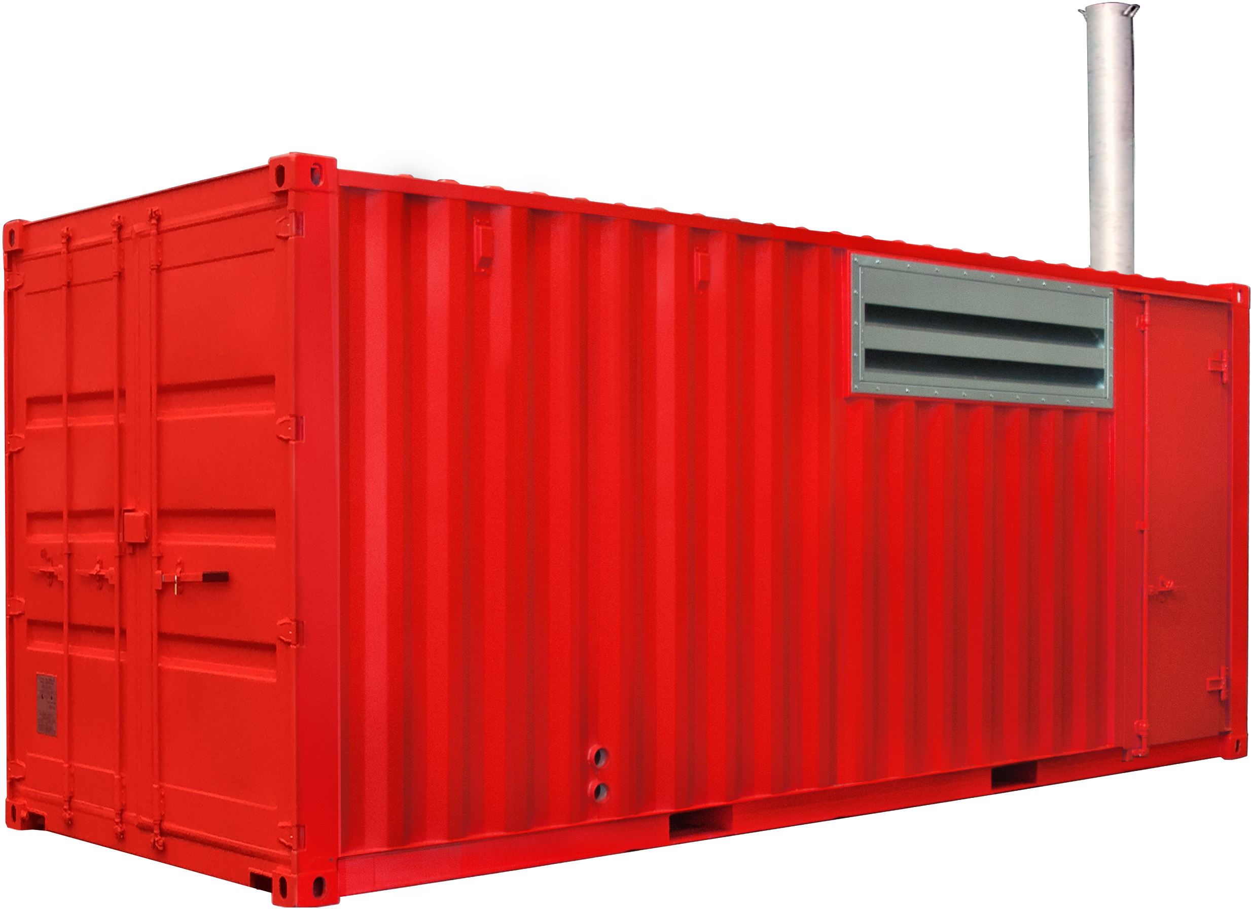 Gas- or diesel-fired mobile boiler room with a heating capacity of 2,000 kW installed in a robust steel heating container. The powerful and compact unit is easy to install. The mobile industrial boilers provide water temperatures of up to 90 °C and pressures of up to 6 bar. The efficient boiler features various safety facilities, frost protection, low NOx burners, smart control technology and has the lowest emissions, energy consumption and noise levels in the European market.